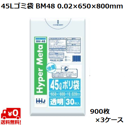 【送料無料】45L ゴミ袋 業務用 透明 BM48 (900枚 ×3ケース) LL+meta 0.02×650×800mm ポリ袋 ケース売り 箱売り まとめ買い 大容量