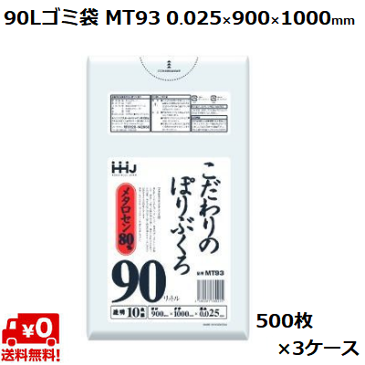 90L ゴミ袋 透明 MT93 (500枚×3ケース) LL+meta 0.025×900×1000mm 業務用 ポリ袋 ごみ袋 大容量 まとめ買い