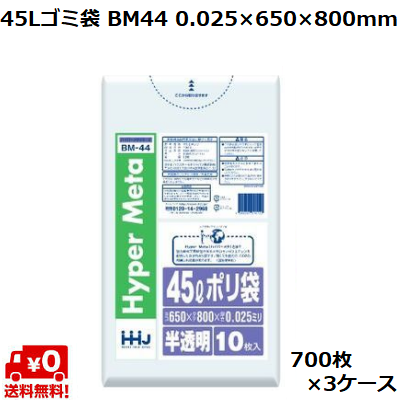 45L ゴミ袋 半透明 BM44 (700枚×3ケース) LL+meta 0.025×650×800mm 業務用 ポリ袋 ごみ袋 大容量 まとめ買い