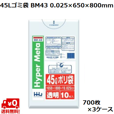 45L ゴミ袋 透明 BM43 (700枚×3ケース) LL+meta 0.025×650×800mm 業務用 ポリ袋 ごみ袋 大容量 まとめ買い